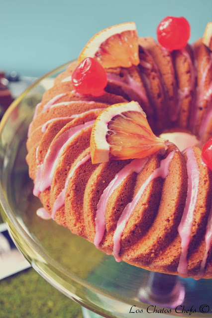 La inspiración viene de ese cocktail. Buscaba uno muy tropical, con colorido, vistoso y delicioso. Y que mejor que un "Tequile Sunrise" para hacer mi Bundt.